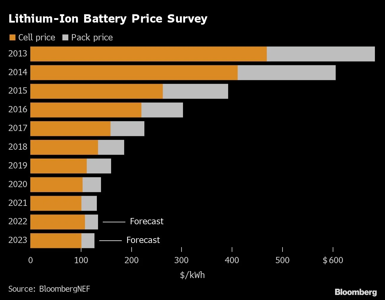 Technological improvements and efficient manufacturing have created a gradual decline in the cost of Lithium batteries. According to a report published by Bloomberg Lithium batteries prices have seen a 80% decline in prices from 2010 to 2017.