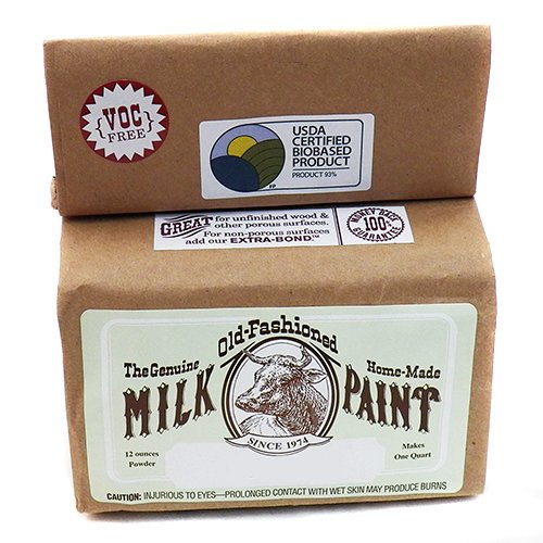 Milk paint is made from all natural non toxic ingredients: curdled milk with vinegar and lime with pigment added. Only when ready for use is the powder form finally mixed with water since it is perishable.
